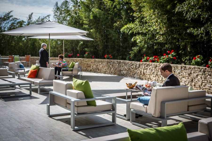 L’été, la terrasse permet de profiter d’une atmosphère agréable et relaxante. L’espace lounge KAMA d’Ego Paris, design Benjamin Ferriol, vous invite à savourer le moment présent. Les coussins du divan KAMA peuvent être positionnés dans neuf positions différentes incitant à de doux instants de détente. Méridiennes et fauteuils KAMA sont en parfaite harmonie avec cet espace privilégié.