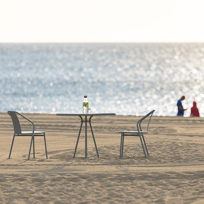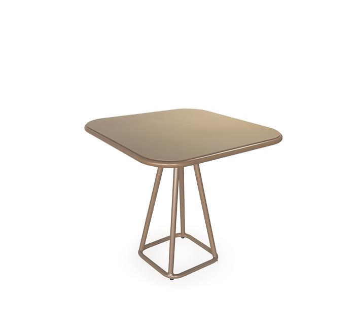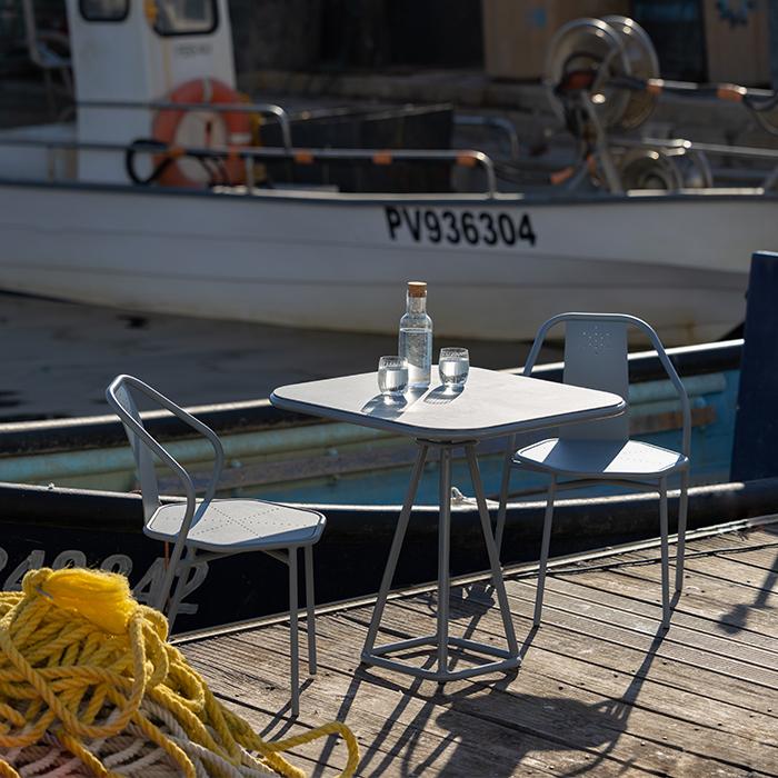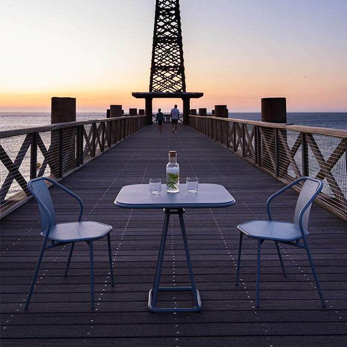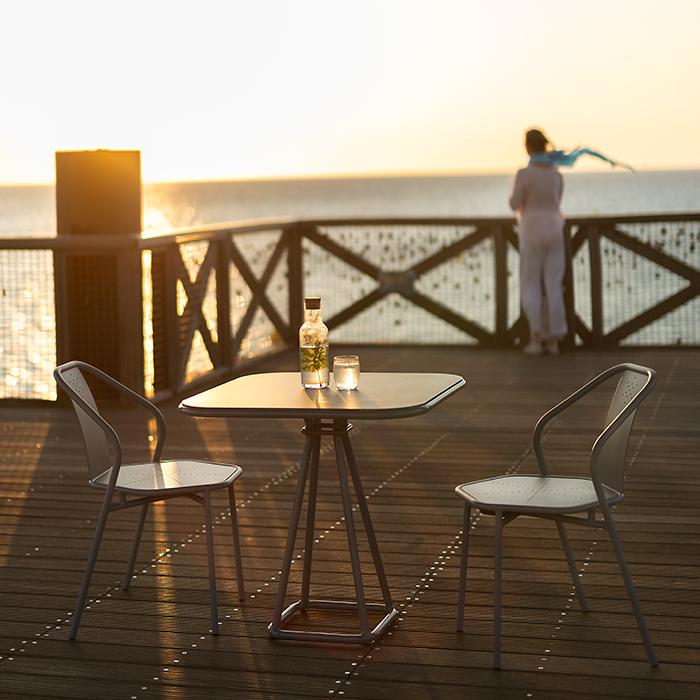 Table Bistro 100% aluminium, légère et colorée. Elle est disponible en 2 tailles : 89×89 et 77x77cm pour 2 ou 4 personnes. Pratique et personnalisable, elle s’adaptera à tous vos projets professionnels ou résidentiels.